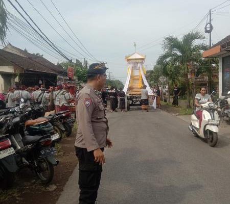 Bhabinkamtibmas Desa Nyitdah Polsek Kediri Polres Tabanan Pam Giat Upacara Pengabenan di Desa Binaan.