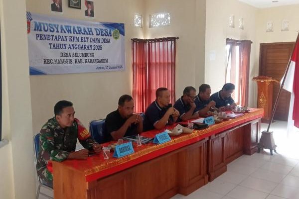 Gentra.co.id Bali – Babinsa Desa Selumbung Koramil 1623-05/Manggis Kopda Mohamad Rofi’i, menghadiri kegiatan Musyawarah Desa (Musdes) penetapan Keluarga Penerima Manfaat (KPM) Bantuan Langsung Tunai