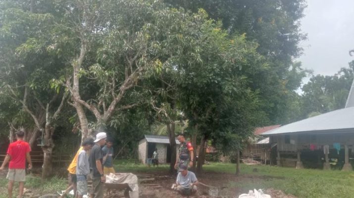 Bangun Gotong-Royong, Babinsa Bantu Warga Pembuatan Dudukan Tower Penampungan Air Bersih