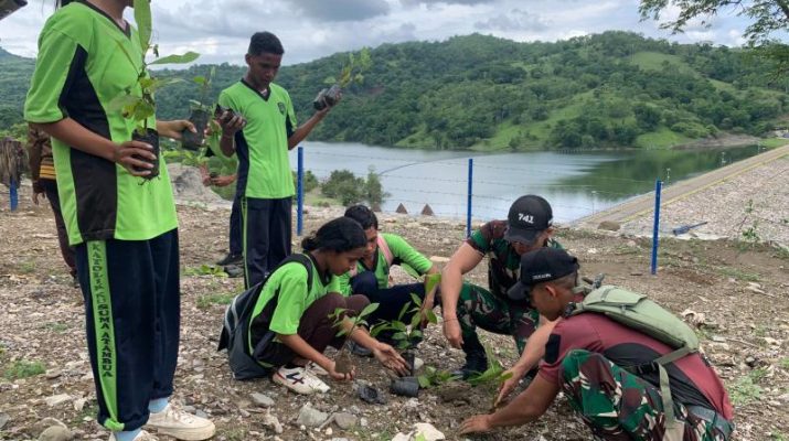 Gentra.co.id NTT – Belu – Satgas Yonif 741/GN laksanakan penghijauan alam bersama Gerakan Pramuka Kwarcab Belu, Forum Pembaruan Kebangsaan, Himpunan Etnis dan Pelajar Kabupaten
