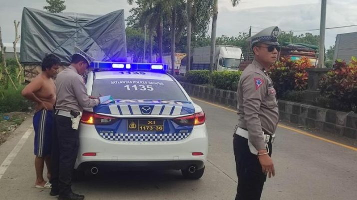 Gentra.co.id Bali – Mangupura – Aparat Satuan Lalu Lintas (Satlantas) Polres Badung melakukan penindakan terhadap truk yang parkir sembarangan di jalan sepanjang jalur Terminal