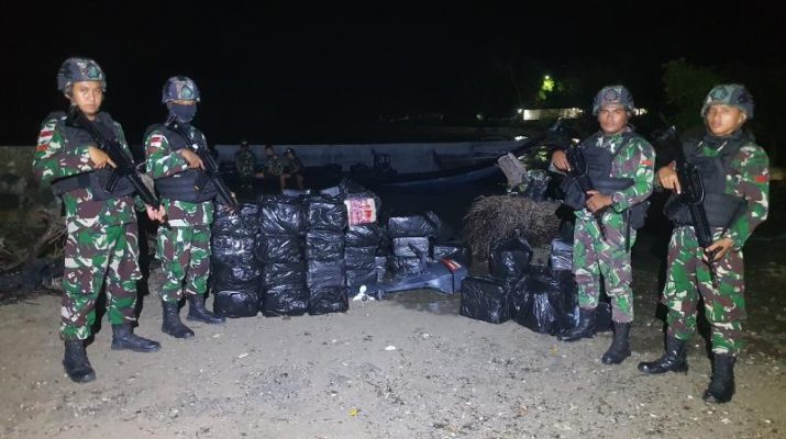 `Satgas Yonif 741/GN Pos Motaain Berhasil Gagalkan Penyelundupan 255 Dus Minuman di Perbatasan