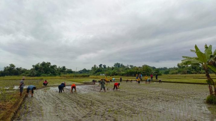 Semangat Swasembada Pangan, Koramil Banjarangkan Turun Sawah Tanam Padi Bersama