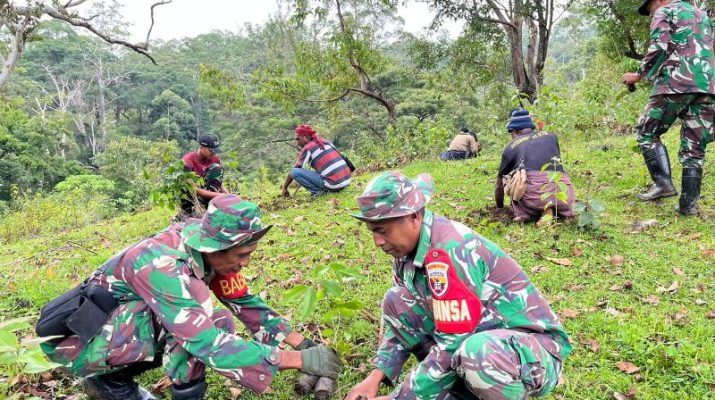Gentra.co.id NTT – Belu – Satgas Yonif 741/GN SSK II, bekerja sama dengan Kodim 1605/Belu, Polres Belu dan masyarakat setempat melaksanakan program penghijauan di kawasan