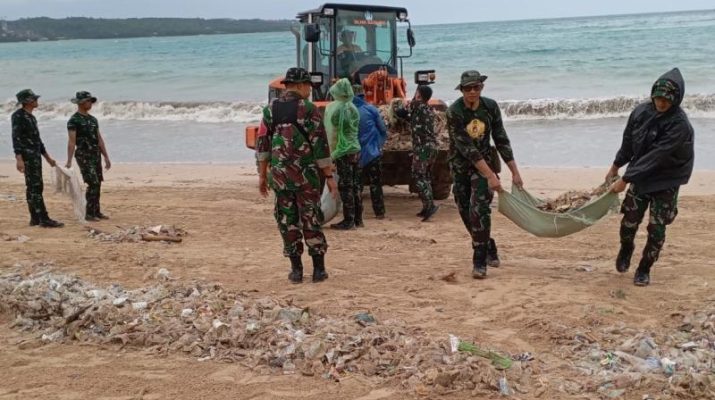 Gentra.co.id Bali –BADUNG – Dalam rangka Karya Bhakti Terpadu, membersihkan sampah di pesisir Laut Pantai Kedonganan, pada hari Rabu, 22 Januari 2025. Tentara Nasional