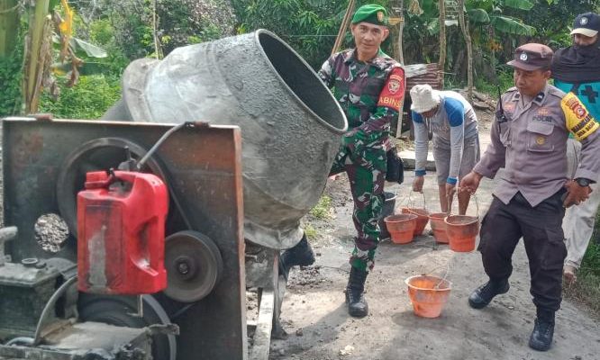 Babinsa Dampingi Warga Rabat Jalan di Desa Dasan Tapen