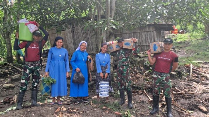 Gentra.co.id NTT – Belu – Satgas Yonif 741/GN Pos Mahen bekerja sama dengan Kapela Monsinyur Gabriel Manek SVD (MGR) laksanakan program penghijauan di kawasan