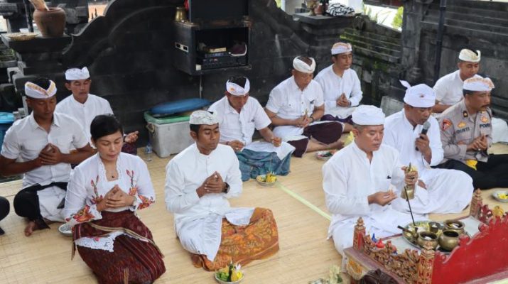 Gentra.co.id Bali – KARANGASEM – Kapolres Karangasem AKBP I Nengah Sadiarta, S.I.K., S.H., M.K.P. bersama Ketua Cabang Bhayangkari Ny. Wira Nengah Sadiarta melaksanakan persembahyangan dalam