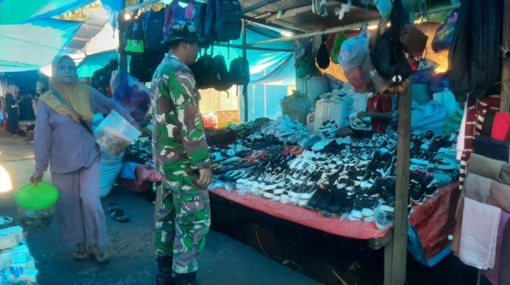 Gentra.co.id NTT – Lembata – Babinsa Praka Ahmad Kairur R melaksanakan pemantauan jalannya kegiatan jual beli di pasar, di Pasar Rakyat Desa Walangsawa Kecamtan
