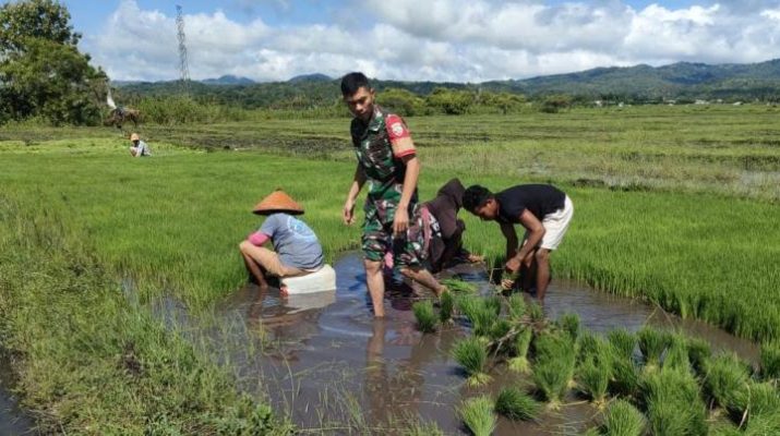 Dukung Ketahanan Pangan, Babinsa Koramil 1618-05/Biut Terjun Langsunh Ke Sawah