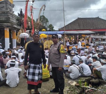 Bhabinkamtibmas Desa Antapan bersinergi dengan Pecalang amankan pelaksanaan rangkaian Upacara Piodalan