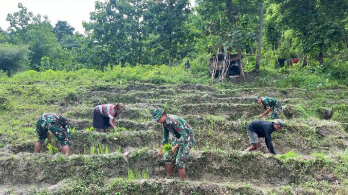 Gentra.co.id NTT – Belu – Dukung swasembada ketahanan pangan di daerah perbatasan Pos Maubusa bantu warga tanam padi di Dusun Nuaderog, Kecamatan Raihat, Kabupaten Belu.