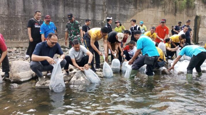 Peringati HUT Kota Singaraja ke-421, Dandim 1609/Buleleng Hadiri Penebaran 20.000 Benih Ikan di Bendungan Titab