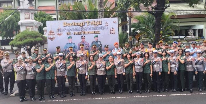 Gentra.co.id Bali – Kapolda Bali Irjen Pol Daniel Adityajaya S.H., S.I.K., M.Si., bersama Pangdam IX/Udayana Mayjen TNI Piek Budyakto, bagikan takjil di depan Makodam