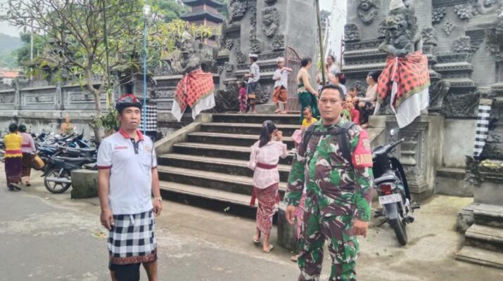 Gentra.co.id Bali – Tejakula, 27 Maret 2025 – Bintara Pembina Desa (Babinsa) Koramil 1609-04/Tejakula, Sertu Putu Sudita, turut serta dalam pengamanan upacara piodalan di