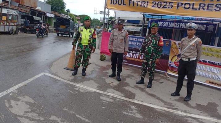 NTT-KUPANG – Kodim 1604/Kupang libatkan anggota Staf dan Koramil jajaran turut dalam Pos Pengamanan (Pos Pam) hari raya Lebaran di sejumlah wilayah yang digelar