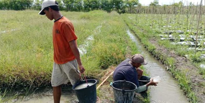 Gentra.co.id Guna mendapatkan hasil yang maksimal, Babinsa Koramil 02/Rindi Umalulu Kodim 1601/Sumba Timur, Serka Fajarudin mendampingi petani melakukan pemupukan dan perawatan tanaman semangka yang