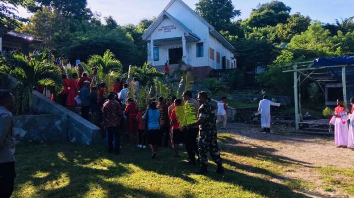 Koramil 02 Camplong Bersama Polsek Camplong Pengamanan Ibadah Perayaan Misa Minggu Palma