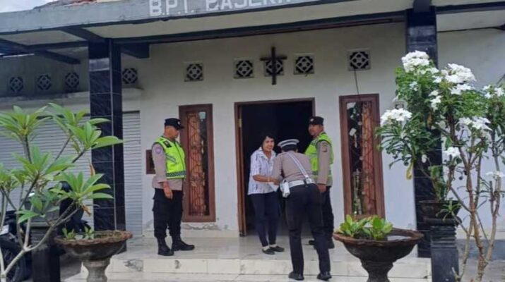 Polsek Tabanan Amankan Ibadah Misa Minggu dan Misa Minggu Palma di dua Gereja