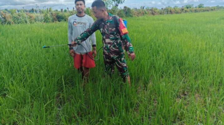 Cegah Hama, Babinsa Rindi Umalulu Dampingi Petani Semprot Tanaman Padi
