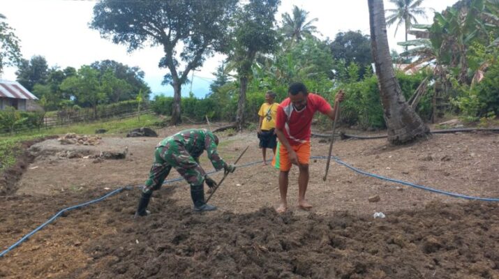 Babinsa Koramil 1621-03/Mollo Utara Bantu Petani Siapkan Lahan Tanam Sayur Sayuran Guna Dukung Ketahanan Pangan Nasional