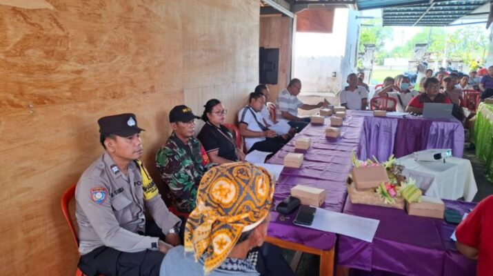 Gentra.co.id Pada hari Sabtu, 26 April 2025 mulai pukul 09.00 s/d 10.30 wita Bhabinkamtibmas desa Tangguntiti Aiptu I Made Suneca menghadiri giat rapat penetapan
