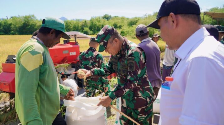 Gentra.co.id –Komandan Korem 161/Wira Sakti Brigjen TNI Joao Xavier Barreto Nunes S.E., M.M, turut serta dalam acara panen raya padi dan penyerapan gabah bersama