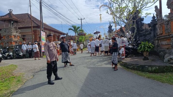 Bhabinkamtibmas Desa Selanbawak Polsek Marga Pengamanan Upacara Dewa Yadnya Ngider Buana