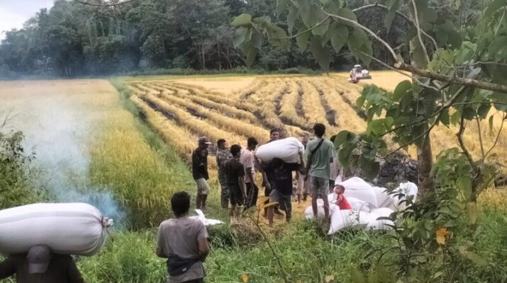 Babinsa Koramil 01/Lewa Kodim 1601/Sumba Timur, Pratu Bethanius membantu warga dalam mengangkat hasil panen padi tepatnya di Kelurahan Lewa Paku,Kecamatan Lewa,Kabupaten Sumba Timur. Selasa