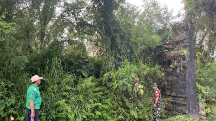 Gentra.co.id –Klungkung,- Pemerintah Desa Tohpati berkolaborasi bersama Babinsa Kopda Komang Puspantara menggelar kegiatan gotong royong bersih lingkungan di candi perbatasan Desa Tohpati, Selasa (