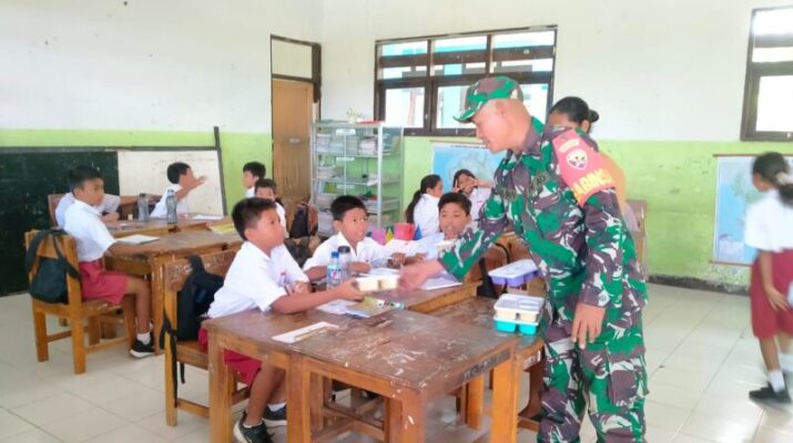NTT Rote Ndao, Sertu Richard Lunameo Babinsa Koramil 01/Ba’a Kodim 1627/Rote Ndao,melakukan pendampingan pembagian program Makan Bergizi Gratis (MBG),Rabu (30/4/2025). “Ini sebagai bentuk dukungan