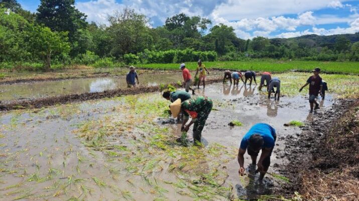 Peran Babinsa Lewa dalam Ketahanan Pangan, Bantu Petani Tanam Padi Di Desa Matawai Amahu