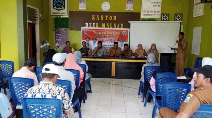 Dompu-NTB. Babinsa Desa Malaju, Sertu Mastudinur Koramil 1614-04/Kilo, menghadiri kegiatan musyawarah pembentukan Koperasi Merah Putih yang dilaksanakan di Aula Kantor Desa Malaju, Kecamatan Kilo,