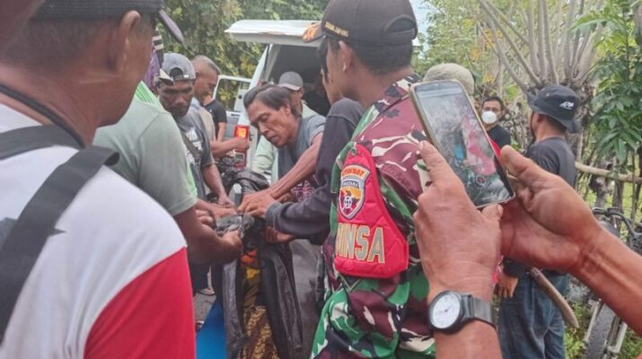NTB — Sumbawa, Babinsa Koramil 1607-02/Empang, Sertu Muhammad Tohir, bersama warga Desa Brangkolong Kecamatan Plampang, membantu proses evakuasi seorang warga yang ditemukan meninggal dunia