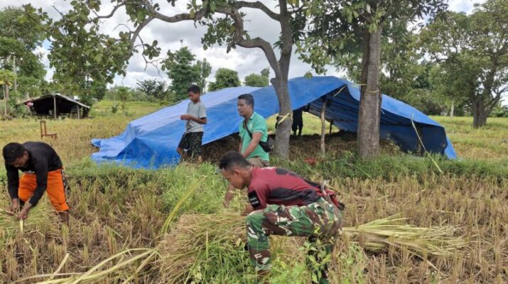 Pos Fatubesi Bantu Rakyat Panen Padi guna Mewujudkan Kemanunggalan TNI Rakyat