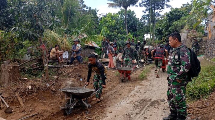 TMMD ke-124 Kodim 1609/Buleleng Terus Genjot Betonisasi Jalan di Desa Depeha