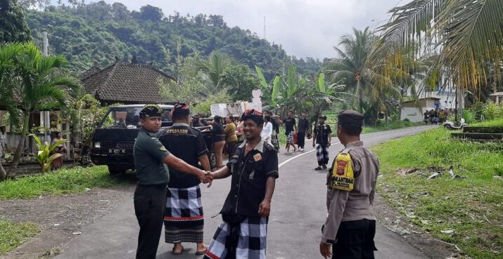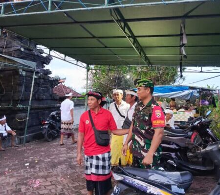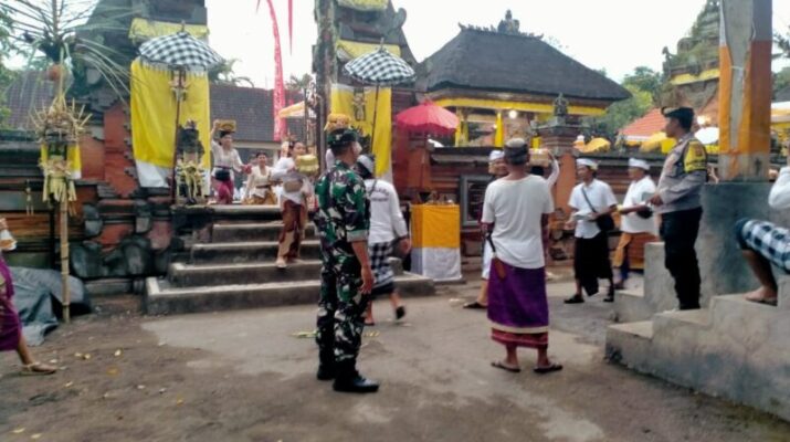 Terjun Langsung, Babinsa Jumpai Bersama Bhabinkamtibmas Dan Pecalang Monitoring Ida Bhatara Mesolah Di Pura Dalem Katulampa