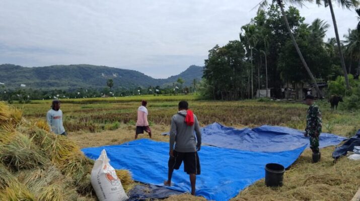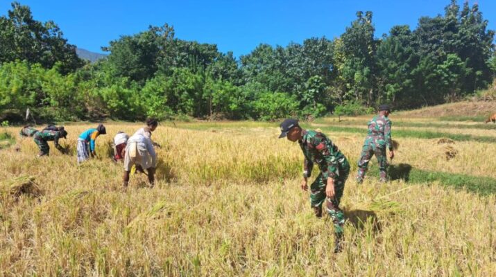 Babinsa Koramil 1621-01/Kota So’e Turun Langsung Ke Sawah Bantu Petani Panen Padi Guna Tingkatkan Swasembada Pangan Nasional