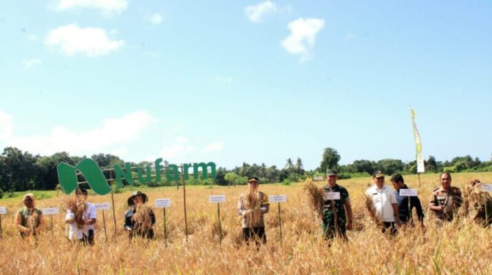 NTT – Sumba Timur,Dalam Rangka meningkatkan ketahanan pangan Komandan Kodim 1601/Sumba Timur Letkol Arh. Doman Endro Pramono bersama Forkopimda melaksanakan Panen Raya padi serentak