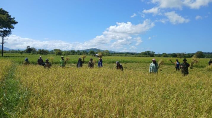 Belu – Pos Mahen mewujud nyatakan kepedulian terhadap masyarakat, panen padi masyarakat di Desa Maneikun, Kecamatan Lasiolat, Kabupaten Belu. Rabu (14/05/2025). Bergabung dengan masyarakat