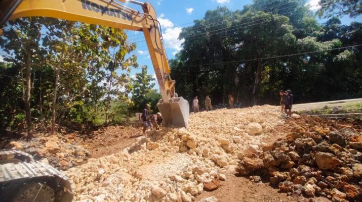 Gentra.co.id –NTT-SEMAU, – TNI Manunggal Membangun Desa (TMMD) ke-124 Kodim 1604/Kupang kini memasuki hari ke-10 pelaksanaannya di Desa Huilelot, Kecamatan Semau, Kabupaten Kupang. Progres