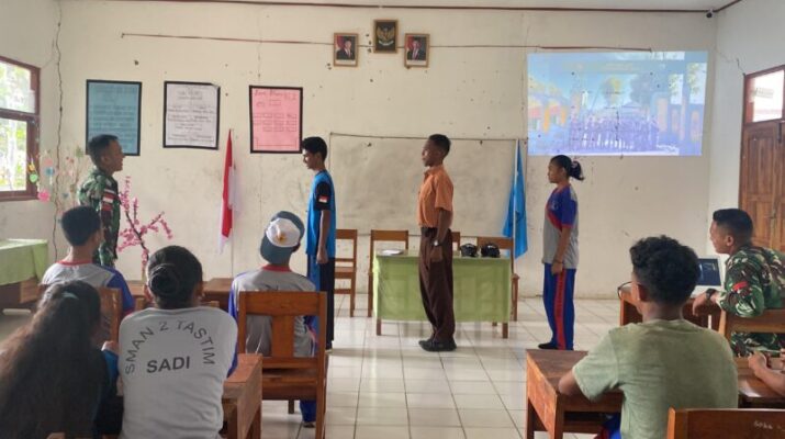 Belu – Pos Asulait Satgas Yonif 741/GN ajarkan wawasan kebangsaan kepada siswa SMAN 2 Tasifeto Timur, Desa Sadi, Kecamatan Tasifeto Timur, Kabupaten Belu. Kamis