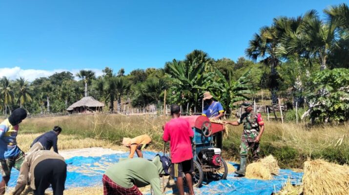 Belu – Wujudkan ketahanan pangan nasional, Pos Salore bantu petani panen padi di Desa Tulakadi, Kecamatan Tasifeto Timur, Kabupaten Belu. Kamis (15/05/2025). Pangan merupakan