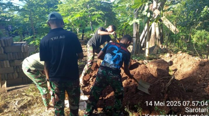 Flotim – Satgas TMMD Ke – 124 Kodim 1624/Flotim mengejar dengan waktu terus kebut Pembangunan Rumah Tak Layak Huni (RTLH) milik Bapak Florianus warga