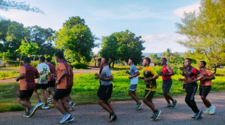 Anggota Kodim 1629/SBD melaksanakan kegiatan aerobik lari untuk meningkatkan ketahanan fisik prajurit Kodim 1629/SBD bertempat di Lapangan Makodim 1629/SBD Jl. Ir. Soekarno, Desa Watukawula,