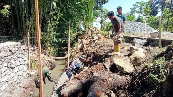 Satgas TMMD Ke-124, Bongkar Akar Pohon Penghalang Pondasi Jembatan di Desa Bagu