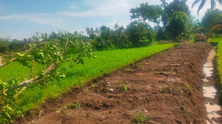 Setelah Pondasi Jembatan, Satgas TMMD Ke-124 Keruk Sawah Jadi Jalan Baru di Bagu