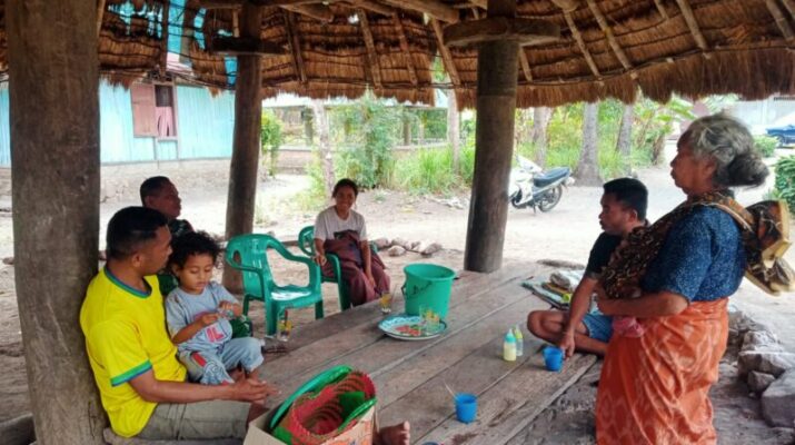 NTT-KEFAMENANU, 20-Mei-2025, Insana Utara Babinsa Koramil 1618-03/Insut, Sertu Okto Kosat, melaksanakan keakraban bersama masyarakat melakukan Komunikasi Sosial (Komsos) dengan warga di Desa Humusu Wini,