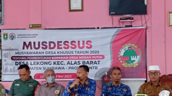 NTB – Sumbawa Besar, Babinsa Desa Lekong, Sertu Edwin dari Koramil 1607-04/Alas, menghadiri kegiatan Musyawarah Desa Khusus (Musdessus) dalam rangka pembentukan Koperasi Desa “Merah
