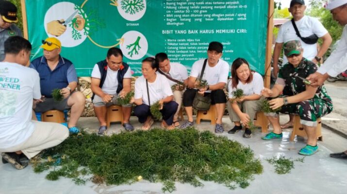 Klungkung,- Dandim 1610/Klungkung Letkol Inf Armen,S.Ag.,M.Tr ( Han ) bersama Kajari Lapatawe B Hamka menghadiri kegiatan Panen Perdana Bank Bibit Desa Berdaya Rumput Laut